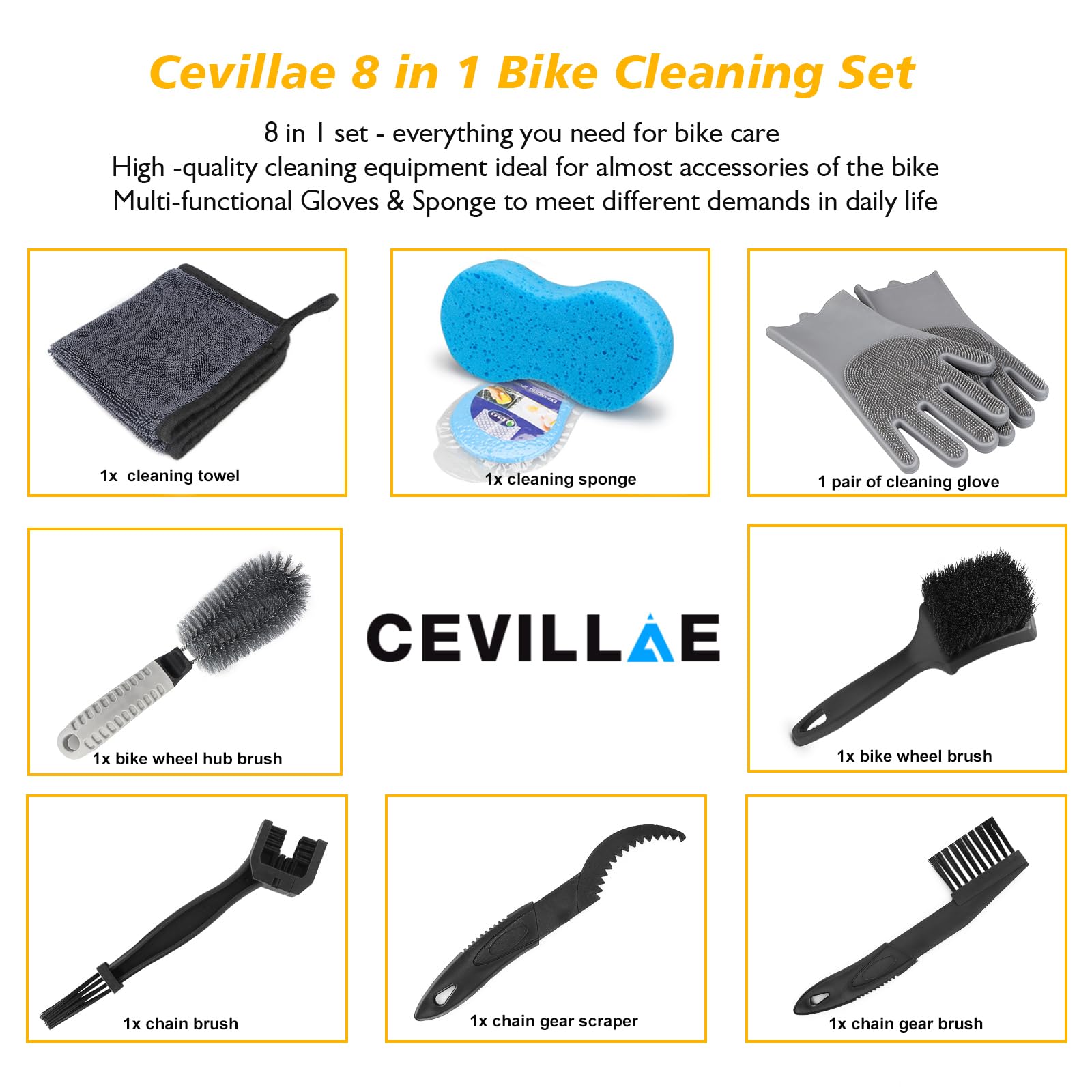 Bicicletta universale Funziona con tutte le biciclette, tra cui Mountain Bike, Road Bike, City Bike, E-Bike BMX, Folding Bike, ecc. Facile e veloce per rimuovere la sporcizia. Wd40 Lubrificante Ysister 2 Pezzi Spazzola Pulisci Catena Moto, Spazzola Per La Pulizia Accessori Bici Set attrezzi pulizia bicicletta, incluso i seguenti 1 x Spazzola catena 1 x spazzolino professionale ruota 1 x Spazzolino integrato 1 x spazzolino fessura 1 x Spazzola per guanti angolare in velluto corallo e gancio per falce ruota 1 x spazzola per la pulizia degli ingranaggi della catena 1 spazzola per pignoni. Tenere lo scrubber a catena con la mano sinistra e girare il pedale con la mano destra in senso antiorario per la pulizia. Unitevi alla lista sempre crescente di clienti soddisfatti e scoprite la differenza con MMOBIEL. Le migliori offerte per Set da 7 pezzi spazzole pulizia bicicletta Mountain Road City BMX Kit bicicletta sono su Confronta prezzi e caratteristiche di prodotti nuovi e usati Molti articoli con consegna gratis Facile da usare Lo Scrubber a catena si aggancia direttamente alla catena senza rimuovere la catena dalla bicicletta e usa il detergente per spazzole per catena per lavare la catena in modo rapido e semplice. Basta riempire la camera con il detergente scelto. Lo spessore delle setole utilizzando due diversi colori di setole di plastica può essere piegato per adattarsi alla forma del pneumatico, si applica anche alle mountain bike e alle bici da corsa.