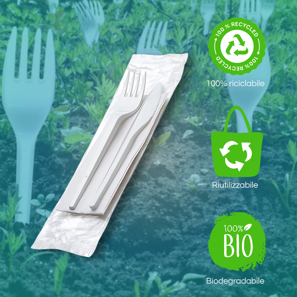 Forchette Plastica 500 Pezzi Tris Posatei Nfrangibili Imbustate Con Tovagliolo Coltello Set Posate ✅ Riceverai - 100 Tris di posate, di Colore Trasparente, Confezionate in Singole Bustine contenente una Forchetta un Coltello un cucchiaio e un Tovagliolo Tris posate ( forchetta , coltello , cucchiaio ) con tovagliolo a 2 veli; Utilizzabile con piatti freddi e caldi; Ideale per settore HO.RE.CA; Compostabile e biodegradabile al 100 %; Temperatura di utilizzo: 85° per un breve periodo; Materiale: CPLA; Lung 🔄 Riutilizzabili fino a 125 Lavaggi 🔄 Le posate Kristal in polipropilene PP5 sono resistenti e possono essere lavate fino a 125 volte in lavastoviglie. 🇮🇹 Prodotte in Italia e Conformi agli Standard Europei 🇮🇹 Realizzate interamente in Italia, queste posate riutilizzabili rispettano tutte le normative europee per l’uso alimentare, inclusa la legge UE 2019/904, e gli standard di sicurezza ISO. ♻️ Smaltibili nella Plastica a Fine Vita ♻️ Quando queste posate in plastica trasparente avranno completato il loro ciclo d’uso, potranno essere smaltite nella raccolta differenziata della plastica, garantendo una soluzione pratica e conforme alle normative. 🧼 Confezionate Singolarmente per la Massima Igiene 🧼 Ogni set è sigillato singolarmente con forchetta, coltello, cucchiaio e tovagliolo, garantendo la massima igiene per ogni utilizzo. Un'opzione duratura che supera le posate usa e getta, per una scelta più responsabile.