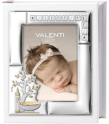 Album Fotografico per Il Battesimo Personalizzabile con Incisione del Nome, della Data o di Una Dedica, Realizzato in Ecopelle Bianca con Cornice in Argento PVD Lucido e Satinato Opzioni Album Foto Coppia Album Photo Valenti Argenti Classique Cod. 19061 3 Valenti Album Di Coppia album portafoto Valenti Argenti Materiale: Argento Marca: Valenti Argenti