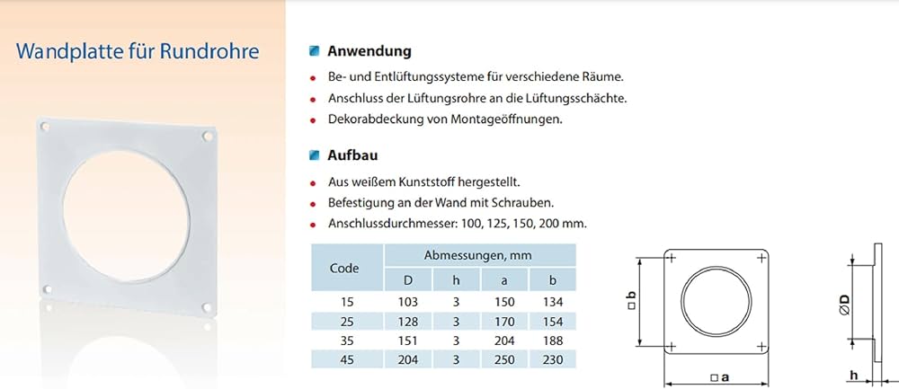 Il collegamento viene effettuato utilizzando i collegamenti con una dimensione della sezione trasversale adatta. La piastra da parete per tubo di ventilazione in PVC da 150 mm è realizzata in PVC bianco. Tubo Per Ventilazione In Pvc Piastra Di Montaggio A Parete 125 Mm, Per Tubo Di Ventilazione In PVC, Tubi Di Tubi Per Ventilazione A Muro Permette una finitura pulita della parete e può nascondere piccole eruzioni murarie. I prodotti PLASTIVENT sono progettati per l'intervallo di temperatura di funzionamento da -30 °C a +70 °C. La piastra di montaggio a parete da 150 mm si adatta bene ad altri prodotti del sistema di ventilazione Vents System. Questa flangia a parete funge da piastra di montaggio per tubi di ventilazione con un diametro di 150 mm. Permette una finitura pulita della parete e può nascondere piccole eruzioni murarie. La plastica è resistente alla luce e agli agenti atmosferici e a La plastica è resistente alla luce e agli agenti atmosferici e all'usura, il che porta a una lunga durata. Sistemi di ventilazione e ventilazione per stanze diverse. Il sistema PLASTIVENT comprende tubi di ventilazione rettangolari con una dimensione di sezione trasversale di 55 x 110, 60 x 120, 60 x 204, 90 x 220 mm e tubi di ventilazione con un diametro di 100, 125, 150 e 200 mm, nonché un'ampia gamma di connettori e parti sagomate come segmenti, riduttori e Connettore.