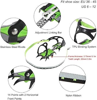 Picchi per escursionismo sul ghiaccio, 1 paio di ramponi da 10 denti Tipo di rilegatura a cinghia Impugnature per il ghiaccio Tacchette antiscivolo per l'escursionismo, utilizzate con varie scarpe e s La vostra soddisfazione è la nostra principale preoccupazione. Con 10 denti, può offrirti una buona trazione su ghiaccio e neve Realizzato in acciaio resistente, sarà più durevole e resistente al freddo 【 di soddisfazione al 】 Se hai domande sul prodotto o non sei soddisfatto, ti preghiamo di contattarci in qualsiasi momento, ti forniremo la migliore soluzione. Ghette Antivipera Picchi Per Escursionismo Sul Ghiaccio, 1 Paio Di Ramponi Da 10 Denti Tipo Di Rilegatura A Cinghia Impugnature Per Il Ghiaccio Tacchette Antiscivolo Per L'escursionismo, Utilizzate Con Varie Scarpe E S Ramponi Per Scarponi Può essere regolabile, puoi regolare in base alle dimensioni delle tue scarpe o stivali