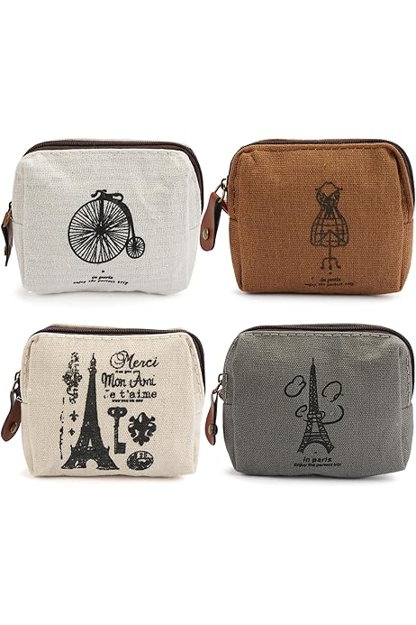 Parallelower 4 Pezzi Mini Portafoglio Mini Canvas Portamonete Vintage Portamonete Piccolo Con Cerniera E Motivo Per Monete Tessere Chiavi Cancelleria Auricolare Rossetto : Amazon.it: Moda