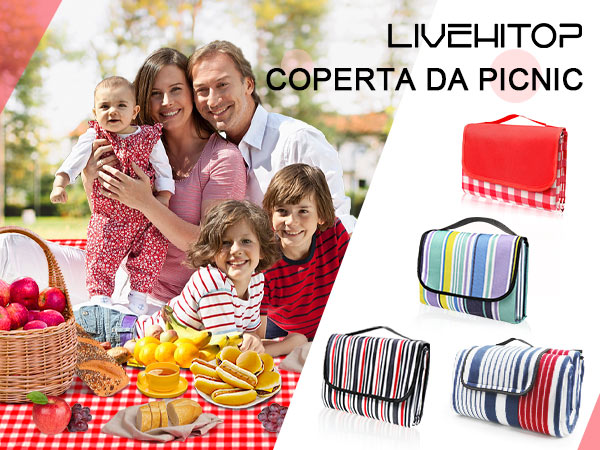 LIVEHITOP Coperta Picnic Impermeabile 200x200cm, Pieghevole Extra