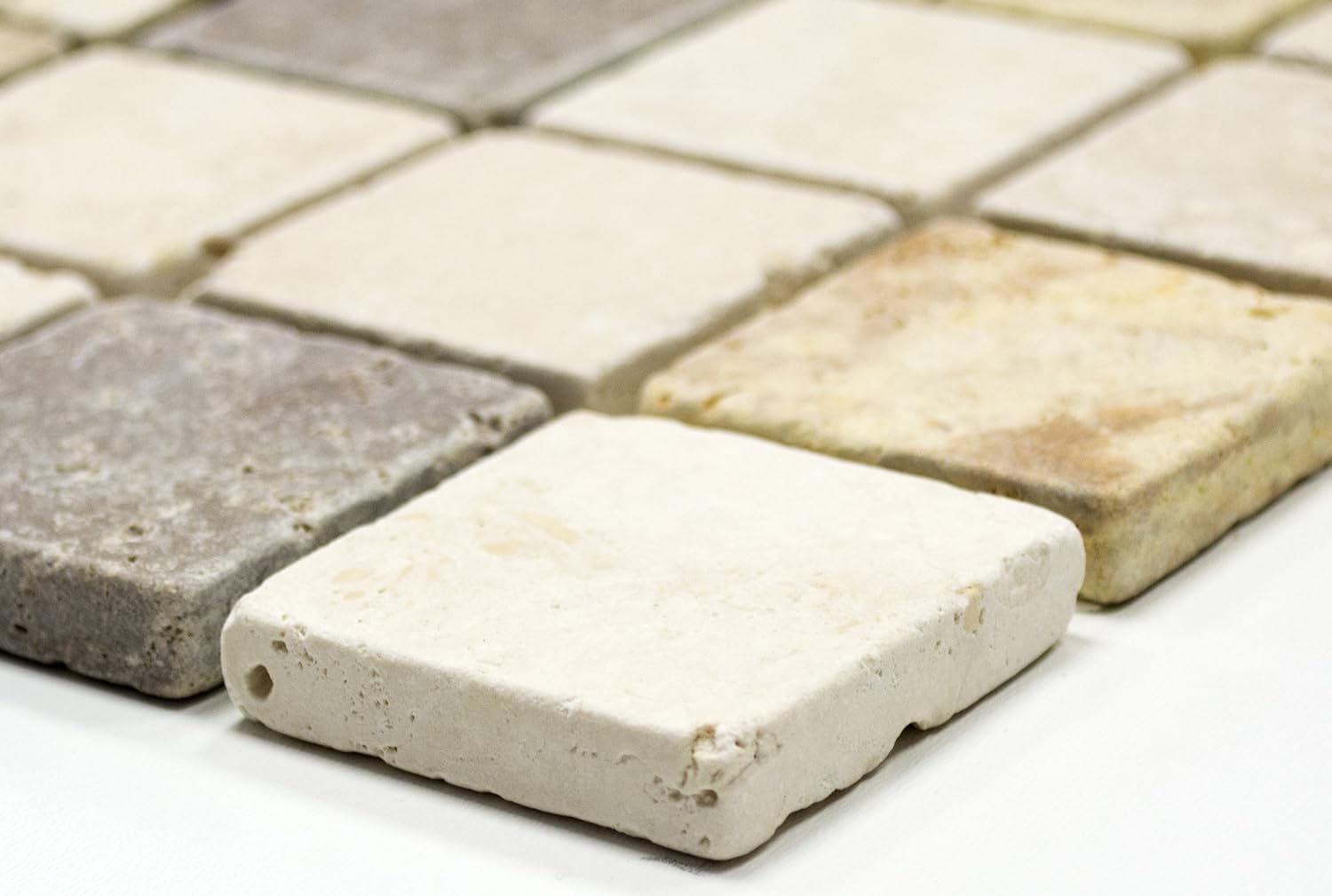 Mosaico Quadrato Travertin Mix Tumbled Travertin Pietra Naturale Cucina Mosaico Formato: 48x48x10 Mm, Dimensioni Foglio
