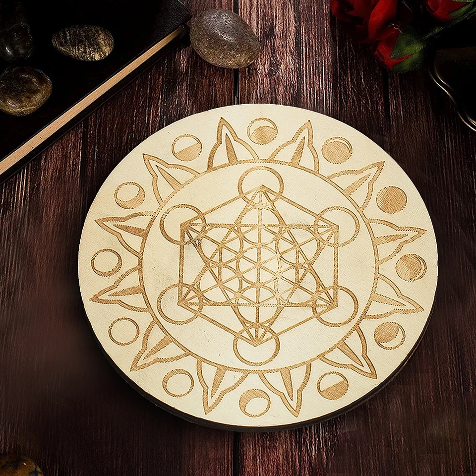 Vassoio In Cristalo Di Pietre - Tavolo Da Altare Cubo Di Metatron, Vassoio In Cristalo Per Tavola Da Divinazione | Planchette Wiccan Con Cubo Metatron In Legno A Doppia Faccia, Forniture Per Streghe