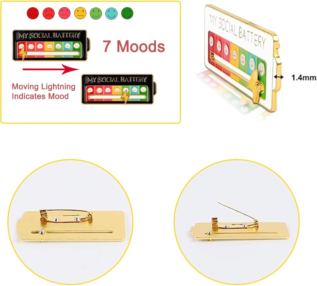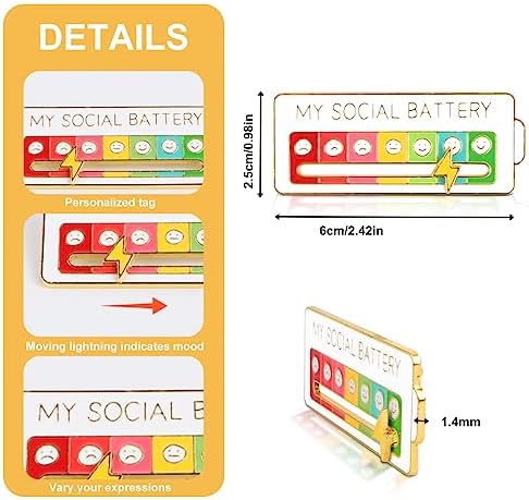 My Social Battery Pin,3 PCS Spilla Di Umore Sociale Divertente,Spille Interattive Dell'umore Spille Da Bavero,Spille Interattive Mood Per Il Cappello Dello Zaino,Regali Umoristici