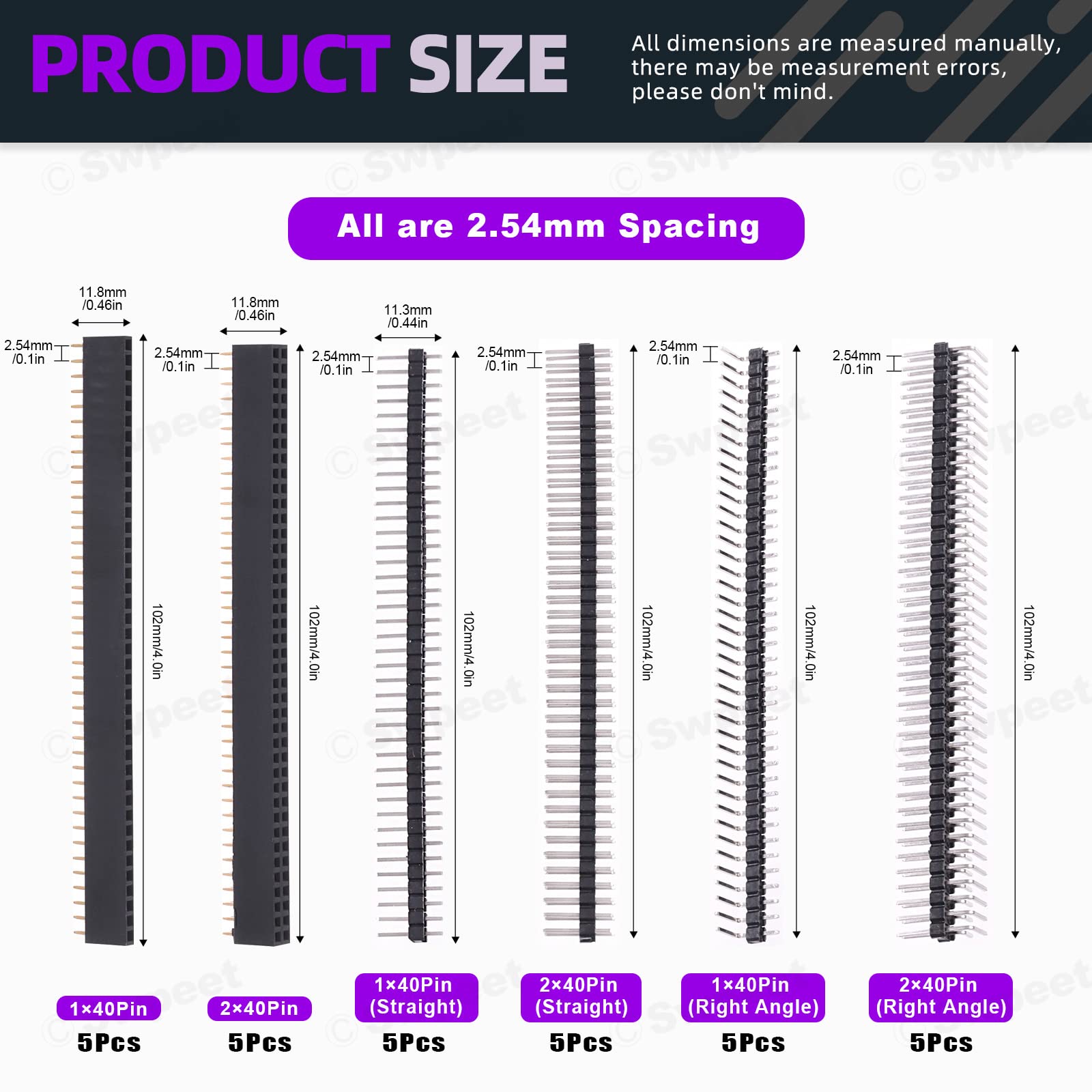 Swpeet 190 Pezzi 14 Tipi 2,54 Mm Maschio E Femmina Pin Intestazione Presa Connettore Striscia Assortimento Kit, Ago Lungo E Corto Femmina Pin Intestazione Presa Curva Dritto Pin : Amazon.it: Commercio, Industria E Scienza
