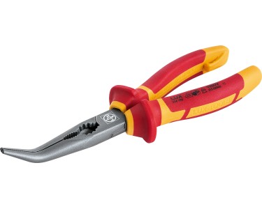 Per tutti i lavori di montaggio, afferraggio, posizionamento e spellatura in prossimità di componenti sotto tensione elettrica fino a 1.000 V AC Applicazione: afferrare e piegare i fili e le parti in lamiera ad angolo retto. Forma della testa: extra lunga testa. Norme: DIN ISO. Materiale: acciaio per utensili di alta qualità, temprato. Pinza A Becchi Tondi LUX-TOOLS Professional 16 Cm | OBI Esecuzione delle superfici di presa: seghettata.