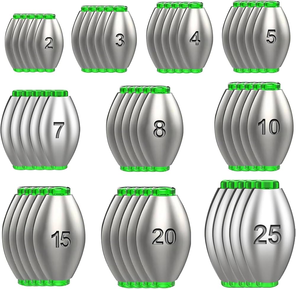 Che si tratti di competizione professionale o di svago quotidiano, Fish può offrirti un'esperienza confortevole e gratuita. Adatto per la pesca di pesci leggeri e piccoli, come il pesce gatto dalla bocca rossa, il pesce gatto dalla coda rossa, lo sgombro, ecc. Piombi da Pesca]: riceverai 50 pezzi di piombi da pesca in 10 dimensioni diverse, ovvero 2 g, 3 g, 4 g, 5 g, 7 g, 8 g, 10 g, 15 g, 20 g, 25 g. Una varietà di lenze da piombi da pesca di diversi pesi e dimensioni può soddisfare le diverse esigenze di pesc (Applicabile ai numeri di filo inferiori a 30) 【Design ovale】: l'esclusivo design ovale del piombini pesca può ridurre la resistenza al vento e migliorare la precisione della lenza, allungando la distanza di lancio. Tutti i modelli sono completi e adatti alle diverse esigenze di pesca. 【Piombi da Pesca】:I piombi da pesca unici offrono un'esperienza di pesca migliore e sono adatti a varie scene di pesca. Una varietà di lenze da piombi da pesca di diversi pesi e dimensioni può soddisfare le diverse esigenze di pesca. Ha un tappo morbido in silicone, che può passare attraverso il lenza in modo fluido e morbido senza danneggiare il lenza. 【Materiale di alta qualità】: il piombo da pesca è realizzato in materiale di piombo di alta qualità, resistente, durevole e riutilizzabile. Piombi Spaccati Per Mare ATSGJLZN 50PCS Piombi Da Pesca, Piombo Da Pesca Piombini Pesca Piombini Piombi Pesca In Offerta