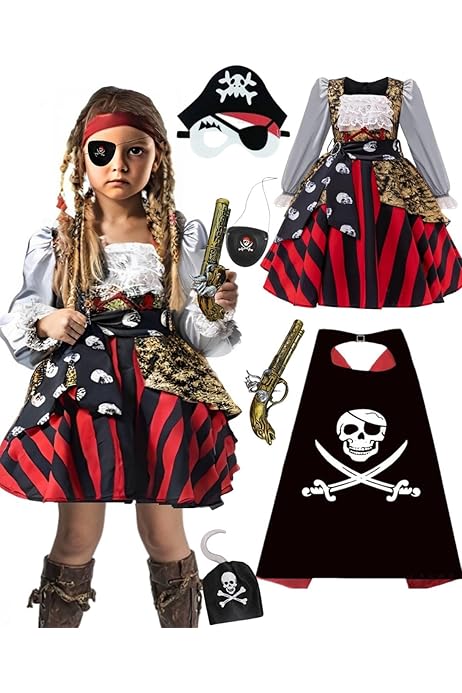 È una decorazione imperdibile per le bambine di Halloween! per figlie, nipoti, nipote, o come regalo per uno spettacolo teatrale o un costume da performance. KIT COSTUME DA PIRATA: Riceverete una gonna da pirata a righe nere e rosse, 1x fascia per capelli da pirata, 1x cintura da pirata, 1 benda per occhi da pirata! Questi articoli possono essere utilizzati per vestire una bambina come una simpatica e misterio Il teschio lucido sulla cintura si abbina alla benda da pirata e all'elastico per capelli. Il kilt, lungo 38 cm, è adatto a bambine di 3-8 anni. UTILIZZARE IN PIÙ SCENARI: Il kit di costumi da principessa pirata è perfetto per molte occasioni, come feste di compleanno, cosplay pirata, carnevale, feste in costume di Halloween, eventi cosplay, ecc; non sono solo il costume della tua ragazza, ma anche adatti per regali di compleanno, forniture per feste, servizi fotografici, set scolastici, giochi, ecc. Vestiti da pirata per Halloween e Martedì Grasso per creare un'atmosfera di festa! KIT COSTUME DA PIRATA: Riceverete una gonna da pirata a righe nere e rosse, 1x fascia per capelli da pirata, 1x cintura da pirata, 1 benda per occhi da pirata! MATERIALE DI QUALITÀ PREMIUM: Il kilt da pirata è realizzato in fibra di poliestere di alta qualità, delicata e morbida. Questi articoli possono essere utilizzati per vestire una bambina come una simpatica e misteriosa principessa pirata per Halloween, Martedì Grasso o altre feste! Vestito Bambina Widmann - Costume Pirata Per Bambini, Vestito, Corsetto, Fascia Per Testa, Festa A Tema, Carnevale : Amazon.it: Giochi E Giocattoli Costume Bambina
