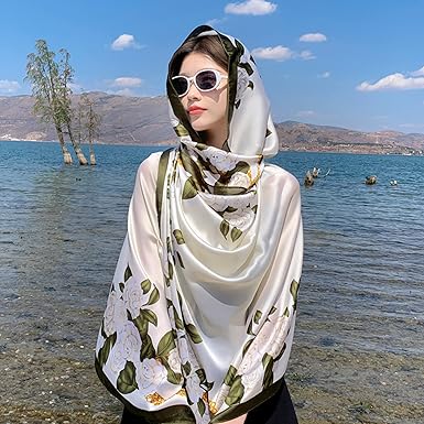 LumiSyne Sciarpa Di Seta Donna Stampa Di Foglie Camelia Motivo Pittura A Olio Colorata Stile Artistico Romantico Sciarpe Lungo Grande Leggero Calda Scialle Stole Protezione Solare Abito Da Spiaggia : Amazon.it: Moda