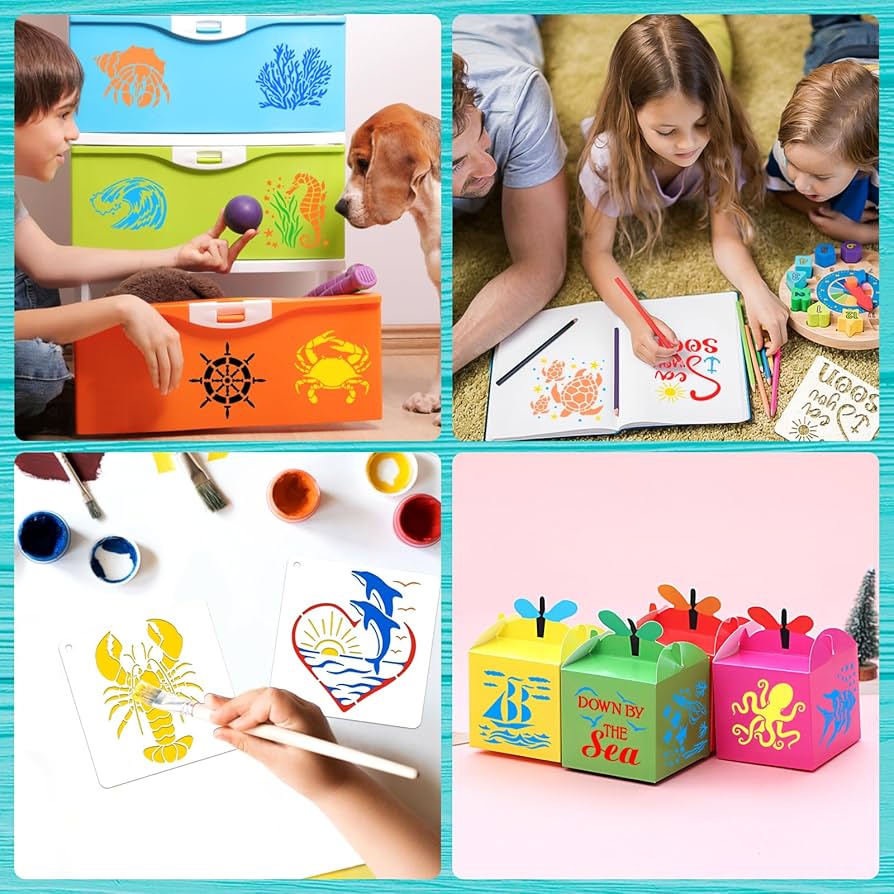 25 Pezzi Modelli Di Pittura Creature Dell'Oceano,Stencil Per