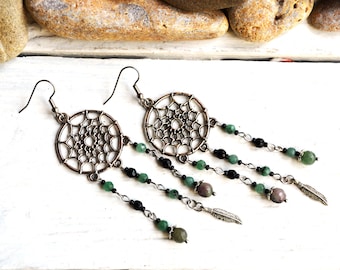 Orecchini Bohémien Con Piume Lunghe Da Donna, Orecchini