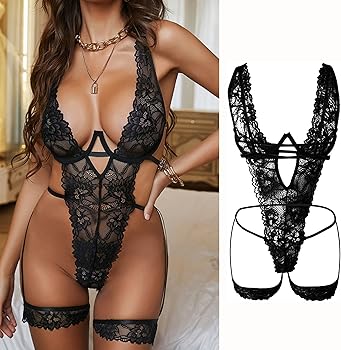 Lingerie Sexy Pizzo Donna Body Teddy Con Reggicalze,Biancheria Intima