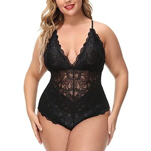 Aranmei Donna Taglie Forti Sexy Body In Pizzo Profondo Intimo Babydoll In Pizzo Con Orsacchiotto 50551058