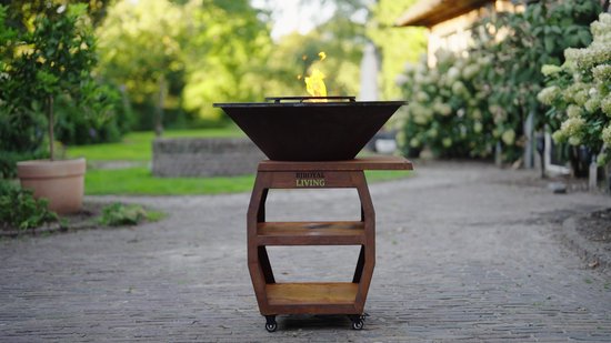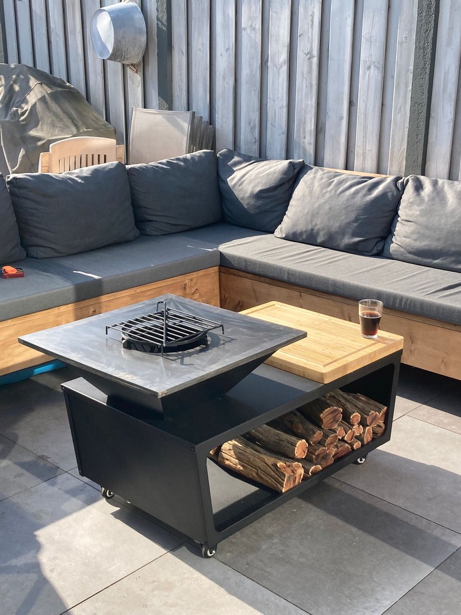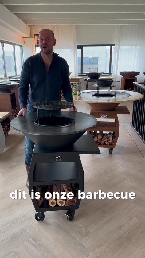 RJRoyal Living BBQ Plancha Grill Hermano XXL Blackline Cortenstaal Met Pook En Houtopslag O80cm 8mm