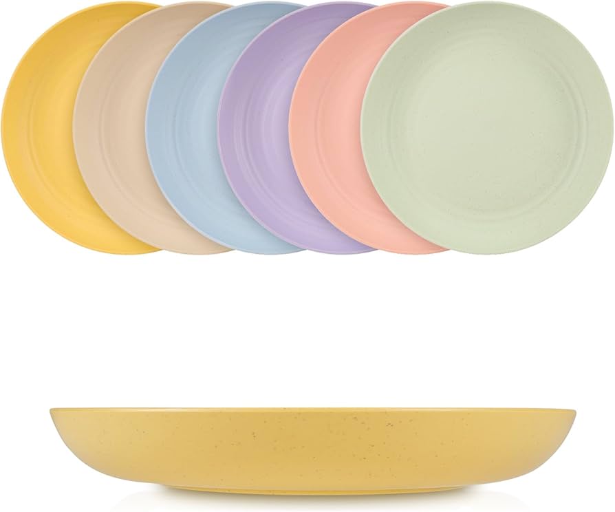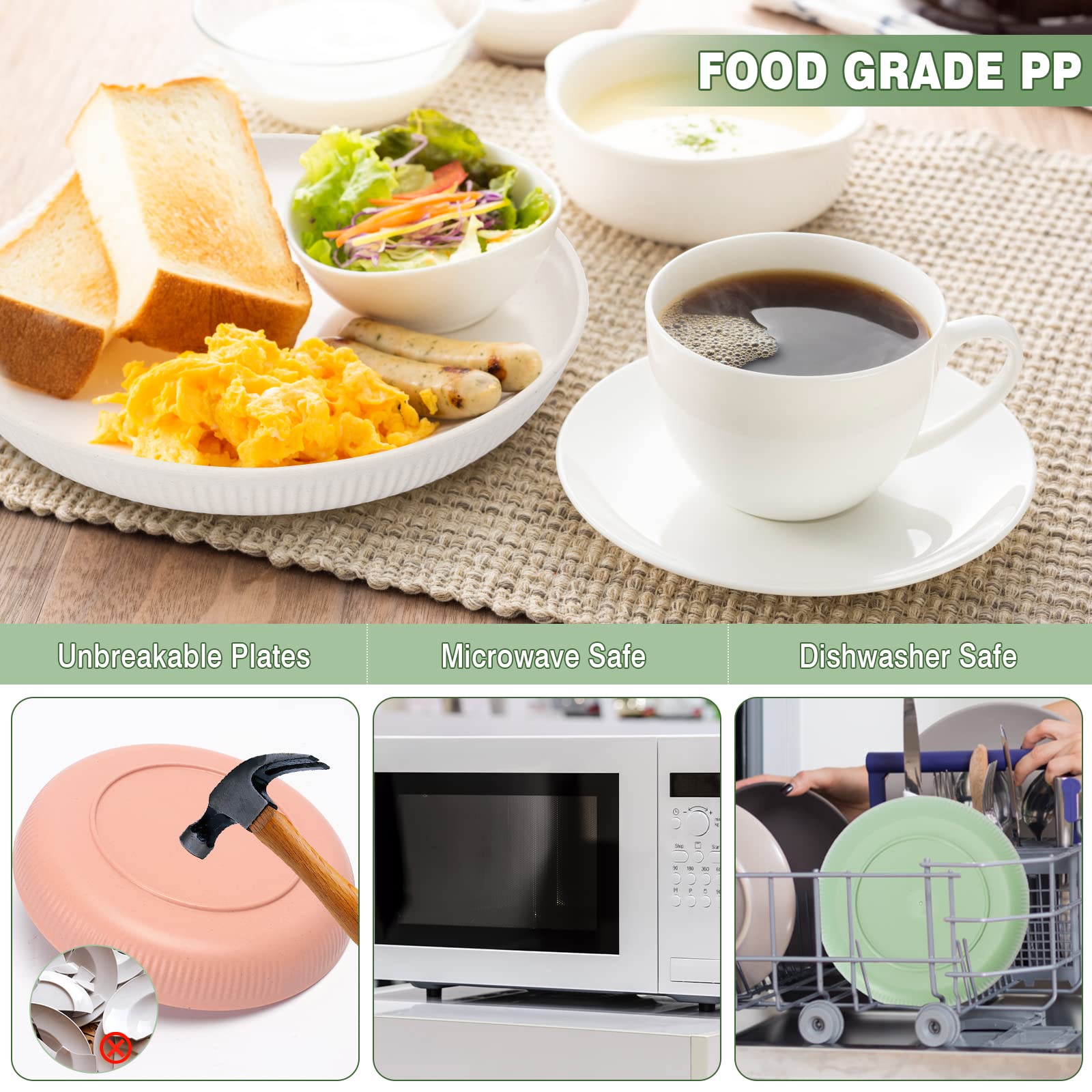 RISVOWO 9 Pcs Piatti In Plastica, 20cm Piatti Campeggio, Riutilizzabili Piatti Plastica Rigida Lavabili, Set Piatti Adatti Lavastoviglie & Microonde, Piatti Per Microonde Per Bambini E Adulti