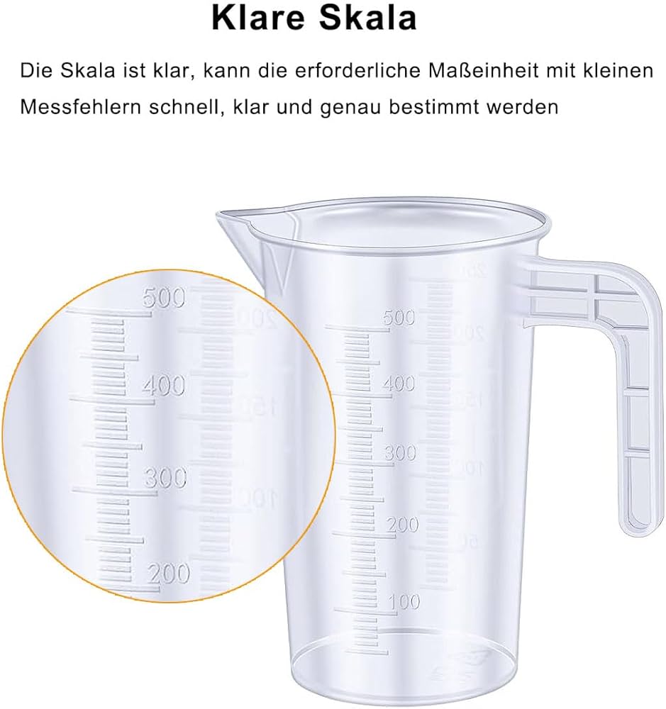 GZcaiyun Set Di 6 Misurini Con Manico, In Plastica, 50/100/250/500/1000/2000 Ml, Dosatore Per La Cura Dell'auto, Laboratorio, Cucina E Cottura