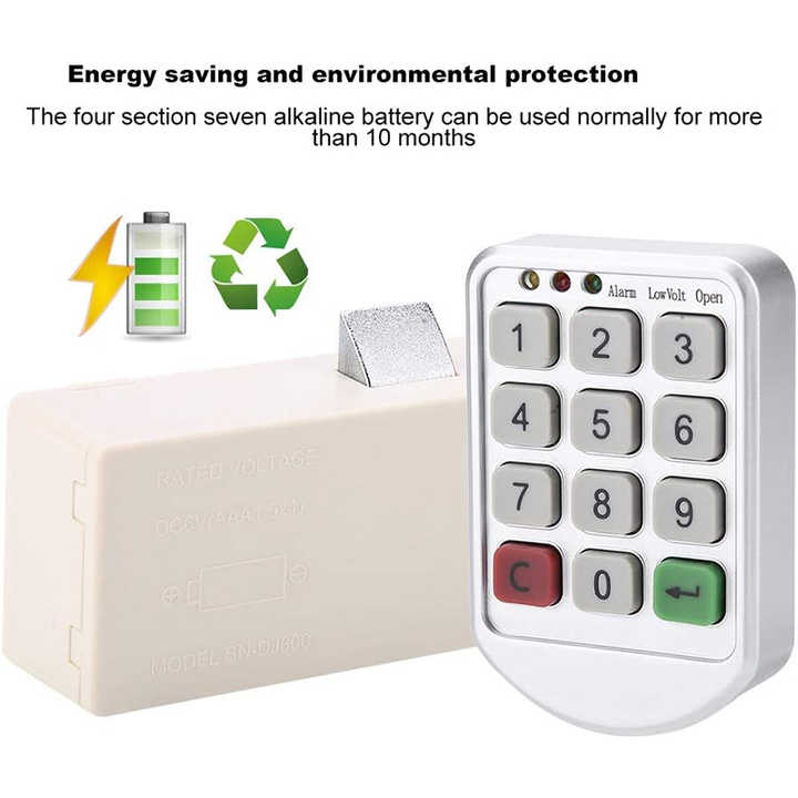 8,5 x 5,5 x 1,8 cm/3,3 x 2,2 x 0,7 pollici (pannello); ca. Facile da trasportare: design compatto, pregevole fattura e aspetto elegante. 11,8 x 4,5 x 3,0 cm/4,6 x 1,8 x 1,2 pollici (blocco) Peso della confezione: 166 g/5,9 once Come modificare la password: 1. Premi due volte il pulsante verde finché la luce gialla non lampeggia, quindi inserisci la tua vecchia password 2. Premere il pulsante verde per confermare 3. Inserisci la tua nuova password 4. Premere il pulsante verde per confermare; 5. La luce verde lampeggia una volta, dopo un doppio segnale acustico, indicando che la nuova password utente è stata modificata correttamente. IN STOCK: Eosnow,Pannello in plastica ABS Blocco codice porta dell'armadio con password elettronica digitale intelligente , AF00314 al miglior prezzo. Consegna rapida in tutta Italia Installazione semplice: l'installazione è semplice: basta aprire un foro passante da 12 mm, quindi avvitare viti sul pannello e tre viti sulla serratura. Specifiche: Tipo: serratura intelligente per armadietto Alimentazione: sette batterie alcaline Materiale: lega di zinco, plastica Applicazione: nuoto, sauna, armadietto dei corsi Dimensioni: ca. Serratura Cancello Esterno Pannello In Plastica ABS Digitale Elettronico Intelligente Tastiera Telecomando Cancello Durevole da usare: realizzato in materiale in lega di zinco di alta qualità, robusto, durevole e sicuro da usare. Ampia applicazione: la funzione può essere commutata liberamente, è possibile impostare una password temporanea o una password fissa. Tieni presente che il nuovo tipo e il vecchio tipo di questo prodotto verranno inviati in modo casuale e assicurati che non ti dispiaccia prima di ordinare. Il lucchetto: 1. Immettere la nuova password impostata 4-10 (se non ci sono modifiche, utilizzare il codice di fabbrica 1111), in conformità con il tasto C o Per favore per sbloccare. 2. Luce verde corretta per password; luci gialle di errore password lampeggianti; 3. Quando si accende la luce verde, tirare verso l'esterno per aprire la porta. Ampiamente usato in armadietti, armadietti, armadi per ufficio, armadi a cassetti, armadi per sauna, armadi mobili, armadi di stoccaggio, ecc. La funzione può essere attivata sulla serratura da sola.