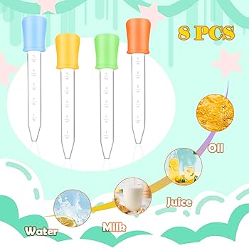 TOYMYTOY Pipetta Contagocce Pipette Di Plastica,Droppers Liquidi Per Bambini - 8 Colori Size 8 Pezzi