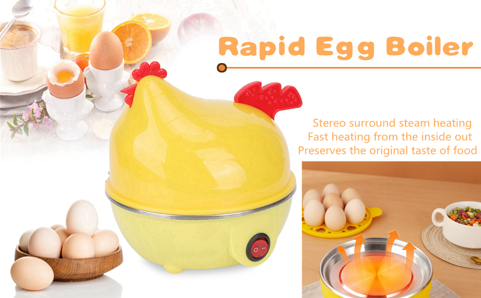 Oltre alla sicurezza, la pulizia è anche molto semplice. Una maniglia a doppia faccia (portauova o corpo di pentole) facilita il trasporto. Il pettine rimovibile è la maniglia del coperchio giallo. Un fornello elettrico per uova risolve tutti questi problemi. Questo fornello sembra carino e ha la forma di un pollo. Vantaggio: il tradizionale metodo di cottura delle uova è un problema. Un fornello elettrico per uova risolve tutti questi problemi L'apparecchio per cuocere le uova di Leoyee utilizza vapore anziché acqua bollente, rendendo più facile sbucciare le uova. Caratteristica: Supporta la cottura e il riscaldamento del cibo. Basta rimuovere il portauovo e lavare le parti con detersivo e spugna. Versare acqua nel misurino, inserire e premere il pulsante di accensione. Vantaggio: il tradizionale metodo di cottura delle uova è un problema. La protezione dalle carenze idriche può farti sentire al sicuro. Cuoci Uova Electric Egg Poacher Boiler Rapid Egg Cooker Steamer 6 Egg Capacity Removable Tray Hot Sale-in Bollitore Uova Sode Consiglio: fai un buco nella parte superiore dell'uovo per evitare che l'uovo si rompa una volta riscaldato, ottieni l'uovo completamente cotto, la conchiglia si stacca facilmente, fai bollire a fuoco basso (3-5 minuti) a media ebollizione (6-8 minuti) a forte ebollizione (10-12 minuti) Cuocere le uova sode a vari gradi per attirare usi diversi. Versatile: supporta la cottura e il riscaldamento del cibo, inclusi non solo uova sode, ma anche latte caldo, uova al vapore, mais cotto a vapore, gamberetti al vapore, verdure al vapore e altri alimenti freschi e nutrienti. Ad esempio, le uova cotte vengono schiacciate per essere mescolate con l'insalata e messe in un panino o un hamburger.