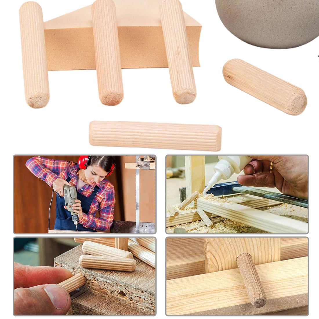 QUARKZMAN 50pz Legno Tasselli Perni 6 X 40mm (0.24 X 1.57 Pollici) Legno Tasselli Barre Scanalate Tasselli Giunti Per Scanalati Lavorazione Legno Mobili Artigianato : Amazon.it: Fai Da Te