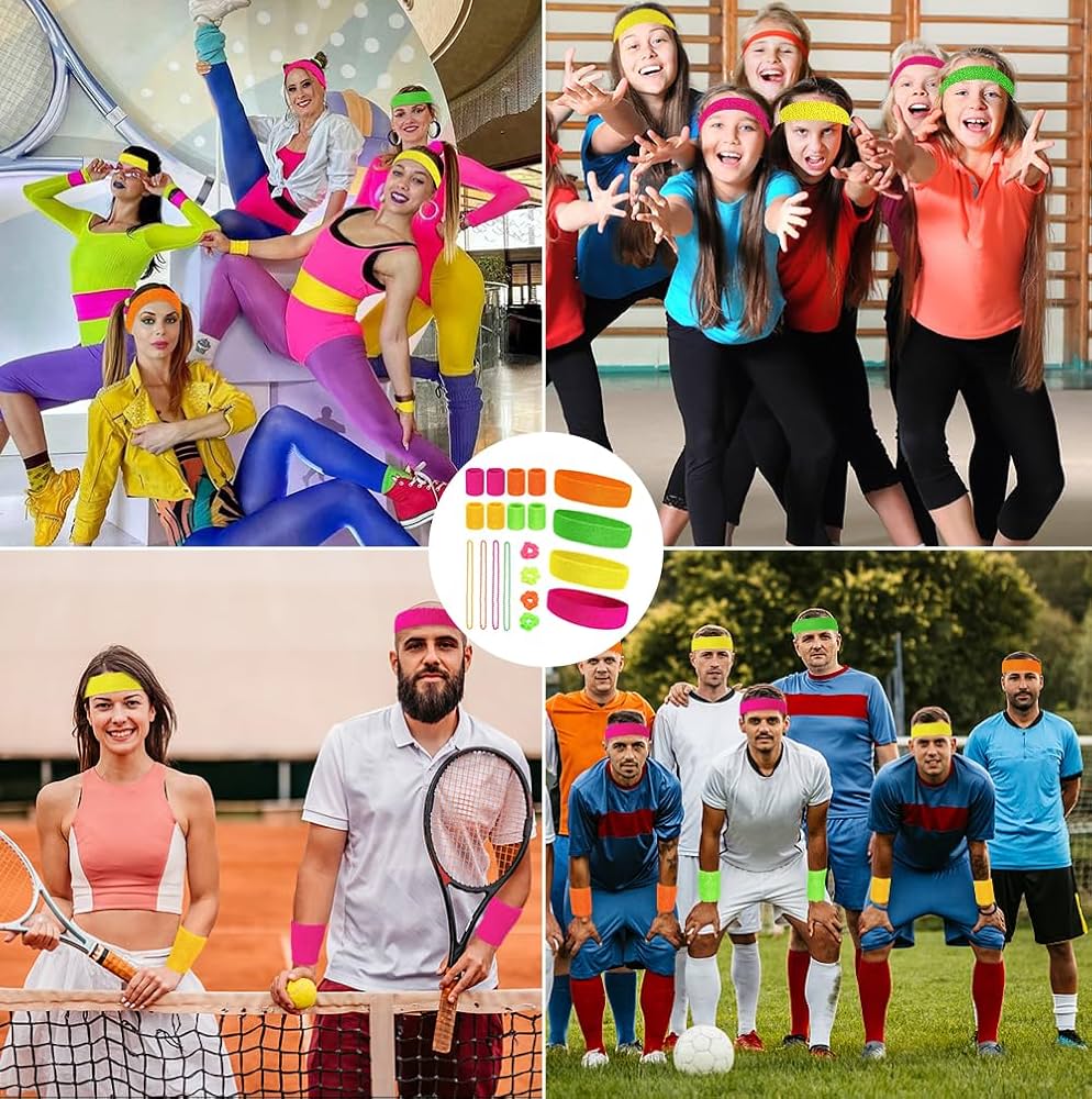 Polsini Tennis Anni 80 Neon Sweatband Set, 12 Pezzi Polsini