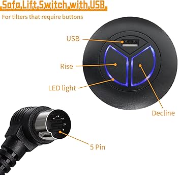 di Natale per gli studenti. È realizzato in ABS di e può essere utilizzato per certo periodo. XHTLLO Pulsantiera Per Poltrona Elevabile O Poltrona Reclinabile Elettrica, Controller Per Poltrona Reclinabile Elettrica A 2 Pulsanti, Interruttore Manuale Per Divano Elettrico A 5 Pin In Lega I controller per divani sono adatti per elettrodomestici, veicoli da trasporto, attrezzature automobilistiche, attrezzature industriali, letti, ecc. Il tipo ad azionamento diretto ad alta t utilizza interruttori e può essere utilizzato senza scatola di controllo. Controller manuale a 6 pulsanti a 5 pin per poltrona reclinabile elettrica. Controller per sedie reclinabili elettriche interruttore manuale a 6 pulsanti a 5 pin per elettrodomestici sollevatore per letto regolabile poltrone reclinabili di Natale per gli studenti Il tipo ad azionamento diretto ad alta t utilizza interruttori e l'interruttore del divano può essere utilizzato senza scatola di controllo. Sedia Puoi usarlo per Pride, Lazyboy, Golden, Catnapper e molte marche diverse di poltrone e sedie elettriche che utilizzano una spina rotonda a 5 pin. Il tipo ad azionamento diretto ad alta t utilizza interruttori e l'interruttore del divano può essere utilizzato senza scatola di controllo. Sedia