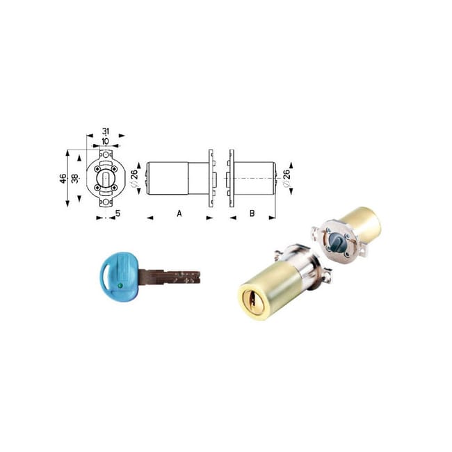 MOTTURA - Cilindro SERIE 91 A Pompa Con Chiave - Col. NICHELATO - Lunghezza Ø 30 X 60