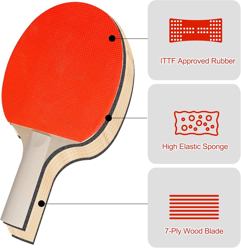 Palline Da Ping Pong Easy-Room - Set Di 2 Racchette Da Tavolo Ping Pong Con 3 Palline , Con Custodia Per Il Trasporto Racchette Ping Pong