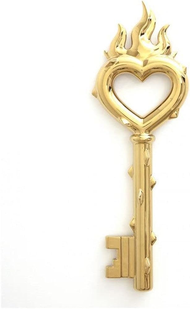 Ignite your passion with the Passion Key . Crafted from porcelain, with a gold-tone finish, this exquisite key is topped with a love heart and flames, and makes for a stunning statement piece in the home Kintsugi Seletti Seletti Australia - Key In Porcelain 'PASSION KEY' - Design Casa Vaso Seletti DESIGN: MarcantonioMateriale: PorcellanaMisure: Cm. 17 h.52SKU 10056