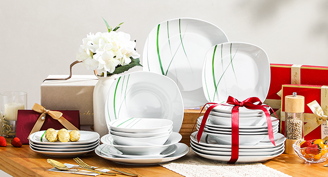 Dimensioni ciotole: 17 cm x 1,9 cm, Capacità delle ciotole: massima 580 ml, consigliata: 500 ml USO E CURA: Idoneo all’uso in per l'uso in microonde, forno e lavabile in lavastoviglie. FUNZIONE INCREDIBILE: Il servizio include 12 piatti piani (Ø 24,7 cm) , 12 piatti fondi (Ø 21,5 cm), 12 piatti da dessert (Ø 19,2 cm), 12 Ciotole (Ø 17 cm, 7’’). Il set di piatti eleganti e belli può essere utilizzato come uso quotidiano a casa o come regalo per i vostri amici e familiari. Il servizio di piatti in ceramica di VEWEET ha uno smalto morbido che non si attacca alle macchie e si pulisce facilmente con un panno. La ceramica bianca con motivo di linee verdi ravviva la vostra tavola. Facile da Pulire con un Panno MIGLIORE SERVIZIO DI GARANZIA: Per dimostrare la nostra fiducia nel pacchetto per set in porcellana, se ha ricevuto un articolo danneggiato o difettoso, non si preoccupi, siamo sempre qui e sempre lieti di aiutarLa a risolvere i problemi 1 Servono per 12 Persone 2 Piatti Piani da Bistecca 3 Piatti Fondi da Zuppa 4 Ciotole per Insalata 5 Design Elegante Possediamo una ricca esperienza nella produzione di porcellana di generazione in generazione e con alta qualità riconosciuta dal cliente VEWEET servizi combinati in porcellana si possono essere pulite facilmente a mano. Capacità Massima 580 ml Capacità Consigliata: 500 ml Ideale per zuppa, cereali o insalata. Servizio di Piatti con Ciotole per Zuppa o Cereali Dimensioni: 24,7 cm x 2,2 cm Ideale per bistecche, pasta o altri pasti principali. FUNZIONE INCREDIBILE: Il servizio include 12 piatti piani ( 24,7 cm) , 12 piatti fondi ( 21,5 cm), 12 piatti da dessert ( 19,2 cm), 12 Ciotole ( 17 cm, 7’’). Adatto per l'uso quotidiano, nei ristoranti, riunioni di famiglia, feste, o come un bel regal Set di stoviglie si applicano perfettamente su qualsiasi tavolo o cucina. Il bellissimo motivo di linee verdi e il design bianco generale rendono la vostra tavola più vivace. Set Piatti Servizio Di Piatti In Porcellana 48 Pcs Per 12 Persone Con Ciotole Per Tognana Piatti Dimensioni: 21,5 x 3,8 cm Capacità: massima 340 ml, consigliata: 300 ml Ideale per la zuppa o pasta. Buon appetito con i tuoi o con chi vuoi! Prenditi cura di esso, può essere utilizzato per molto tempo Il servizio di piatti è realizzato in ceramica di alta qualità, resistente alle alte temperature. Regalo Possibile Anche a NATALE Design semplice non passa mai fuori tempo, dandosi un buon appetito per ogni giorno