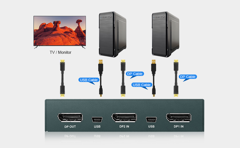 DIGITUS KVM-Switch DisplayPort – 2-Port Single-Display – 2 PC 1 Monitor