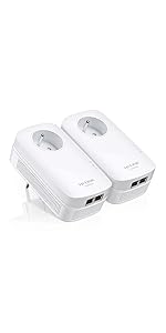 TP-Link CPL 1000 Mbps, 1 Port Gigabit et Prise Intégrée, Pack de 2 CPL - idéal pour Profiter du Service Multi-TV à la Maison, Compatible toutes avec toutes les Box, TL-PA7017P KIT(FR AMPIA COMPATIBILITÀ - Compatibile con tutti i box internet, Modalità standby brevettata riducendo il consumo energetico di quasi l'85% Presa integrata: consente di collegare altri dispositivi situati nel vostro salotto o ufficio, si prega di collegare direttamente in una presa a muro per una maggiore velocità CPL ad alta velocità - Velocità di trasmissione CPL fino a 1 Gbps, ideale per streaming 4K e giochi online senza latenza, Tecnologia di modulazione: OFDM (PLC) (Nessun supporto Wi-Fi) Facile installazione - Plug and Play, nessun requisito di configurazione Collegare il CPL a una presa a muro per evitare interferenze e ottenere portate più potenti Tp Link TP-Link CPL 1000Mbps Avec 1 Port Gigabit Et Prise Intégrée Type F Tp Link Extender VERSIONE FRANCESE - Con presa di terra sulla presa integrata per un collegamento ottimale