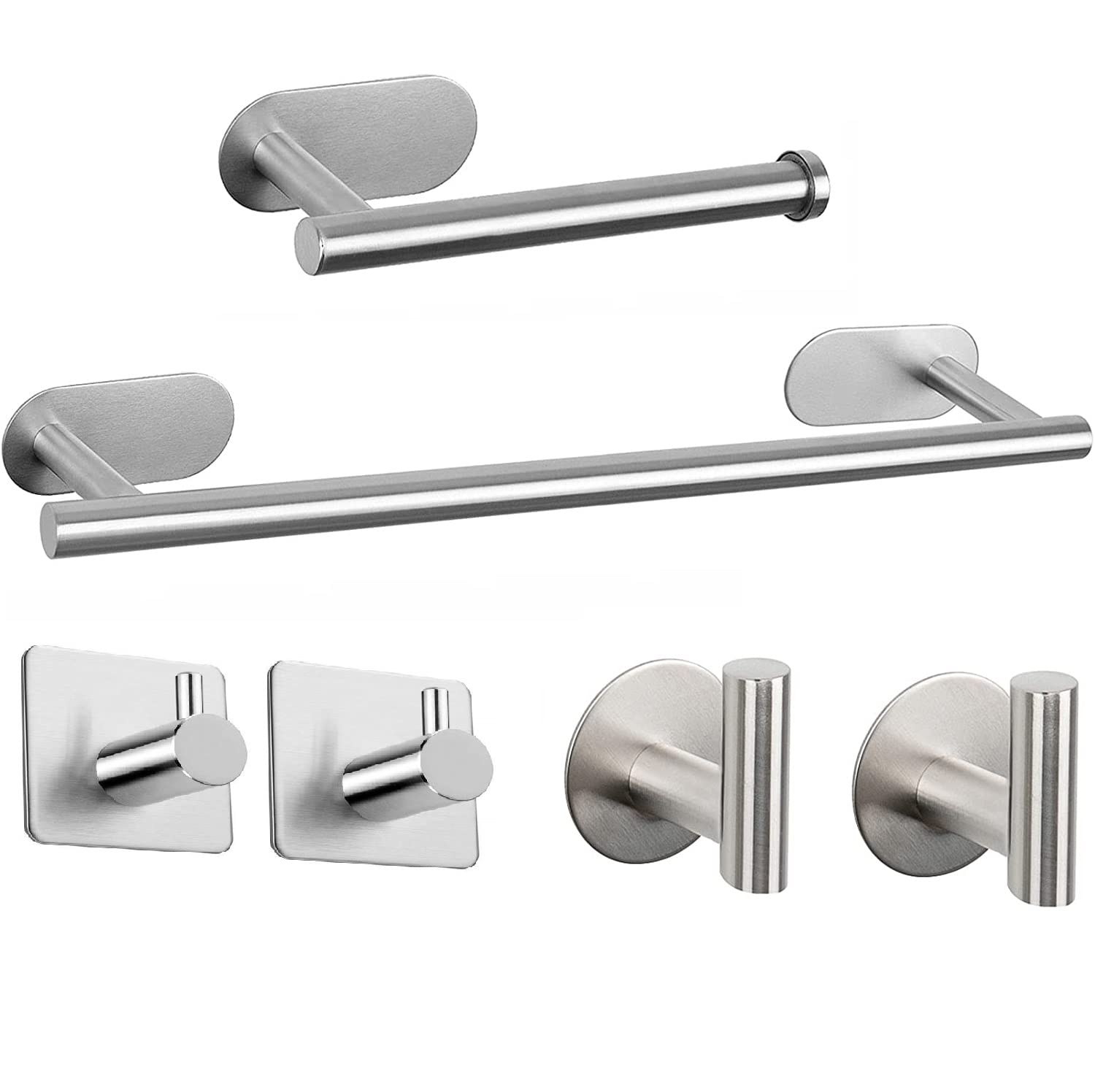ECENCE Set Porta Asciugamani - 1x Porta Carta Igienica + 2x Ganci Adesivi - Accessori Per Bagno - Acciaio Inossidabile 304 Cromo