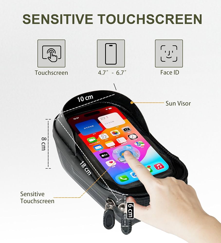 Visiera parasole durevole e 3D: La custodia è dotata di un guscio rigido in EVA che la protegge da cadute, pressioni e deformazioni. Che si tratti di navigare, ascoltare musica o rispondere a chiamate, è possibile utilizzare il telefono con facilità durante la guida. Borsa Telaio Bici Gravel Porta Borraccia Bici AUGOOL Bici Borse Ciclismo Top Pannier Borsa Telaio Anteriore Del Tubo Superiore Con Guscio Rigido Grande Capacità Schermo Tatile Per Smartphone Sotto 6,7 Pollici Porta Supporto Per Telefono Bicicletta AUGOOL Supporto per telefono bicicletta Bici Borse Ciclismo Top Pannier Borsa telaio anteriore del tubo superiore con Guscio Rigido grande capacità schermo Tatile per smartphone sotto 6,7 pollici Grazie all'elevata sensibilità e chiarezza, è possibile utilizzare facilmente il telefono senza toglierlo dalla custodia. È possibile portare con sé non solo il telefono cellulare, ma anche la torcia, il portafoglio, le chiavi e altri oggetti. Supporto per telefono bicicletta impermeabile - Borsa telaio per bicicletta MTB con copertura antipioggia porta telefono bicicletta MTB grande capacità schermo Tatile per smartphone sotto 6,8 pollici Ampia compatibilità: Adatta alla maggior parte degli smartphone, inclusi iPhone 15 Pro Max, 15 Pro, 15, 14 Pro Max, 14 Pro, 14, 13 Pro Max, 13 Pro, 13, 12 Pro Max, 12 Pro, 12, 11 Pro Max, 11 Pro, 11, XR, XS Max, X, 8, 7, 6S e 6 Plus. Touch screen altamente sensibile: La finestra in TPU misura 17 x 9,3 cm. La visiera parasole impedisce i riflessi quando si utilizza il telefono durante la guida e migliora la visibilità.