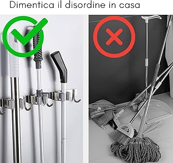 Risparmio di spazio] Il porta mocio da parete senza fori utilizza efficacemente la parete per organizzare e riporre il mocio, risparmiando spazio e creando una casa pulita e ordinata Salvaspazio: Si Appende Facilmente Alla Porta per Risparmiare Spazio, Offre un'opzione di Stoccaggio per i Tuoi strumenti e Prodotti per la Pulizia e Mantiene il tuo Spazio in ordine e Organizzato. Facile da Installare: Il Design Sopra la Porta Elimina l'installazione Complicata. Contiene di Più: Il Nostro Porta Mocio è Dotato di 3 Ganci e 4 Morsetti per Sostenere Facilmente Scope, Mocio, Rastrelli, Pagliette, Stracci e altro Ancora, Aiutandoti a Tenerli Fuori Dalla Portata ma a Portata di Mano. In Alternativa, è Incluso un Nastro Adesivo 3M se si Desidera Attaccarlo al Muro o ad Altre Superfici Lisce, Pulite e Senza Danni. Appendi Scope A Muro Yolistar 4 Pezzi Porta Scopa Parete Con Gancio Antler, Organizzatore Portascope Da Muro Manico Scopa Basta posizionare Guesto Supporto Sopra la Porta per un Aggiornamento Immediato Dello Spazio di Archiviazione.