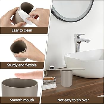 Marchio. Farerkass ; Materiale. Polipropilene (PP) ; Colore. Grigio ; Dimensioni del prodotto. 21L x 10l x 7H cm ; Tipo di montaggio. Libera installazone Compatto e salvaspazio: Con dimensioni di 10 cm x 7 cm, il Portaspazzolini in Plastica da Bagno è leggero e compatto, perfetto per l'uso in bagno o in viaggio. Facile da pulire: La superficie liscia del Bicchiere per Spazzolino Portatile facilita la pulizia, basta una passata per eliminare macchie e depositi, mantenendo il bagno ordinato e pulito. Bicchiere Per Porta Spazzolino 3 Pezzi 300ml Bicchiere Porta Spazzolino, Farerkass Porta Porta Bicchieri Di Plastica Design moderno e minimalista: Le tonalità marrone, bianco e grigio offrono uno stile sobrio ed elegante, Bicchiere porta Spazzolino adattandosi perfettamente a bagni, uffici o palestre, donando un tocco moderno al tuo spazio. Materiale PP di alta qualità: Il bicchiere porta spazzolino in PP di alta qualità, resistente all'usura e alla pressione.