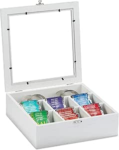 Porta Te Relaxdays Scatola Porta Tè E Tisane, 9 Scomparti, In Bambù, HxLxP Porta Tisane Bustine Contenitore per il tè: organizer con 12 scomparti su 3 ripiani - per conservare le bustine del tè Dettagli: dimensioni porta bustine di tè HLP: 36x31x19 cm - ripiani impilabili o da usare singoli Il cofanetto con 12 scomparti offre abbastanza spazio per riporre bustine di tè, condimenti, capsule per il caffè e tanto altro. Grazie al coperchio trasparente, potrete sempre tenere sotto controllo le vostre scorte di tè, scegliendo velocemente il vost Design: porta tè verticale in bambù naturale - con separatori - per avere tutto a portata di mano