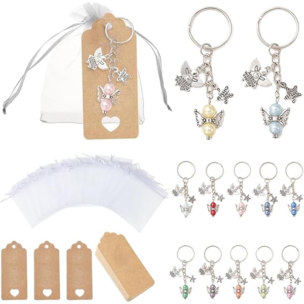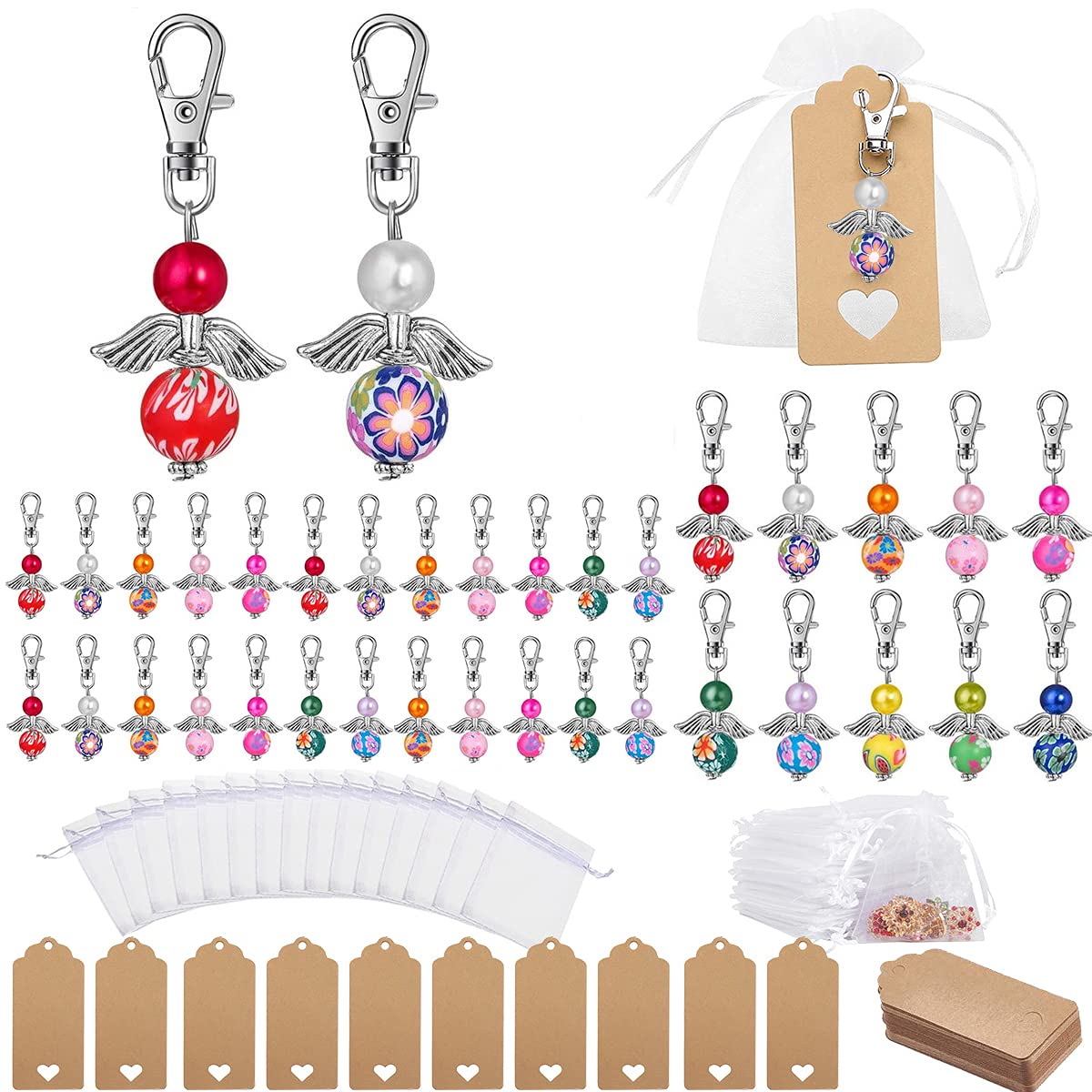 Katutude Ciondoli Angelo Custode Perla Colorato, Portachiavi Angelo Set Con Sacchetto In Organza Ciondolo Etichette, Portachiavi Di Perle Per Regalo