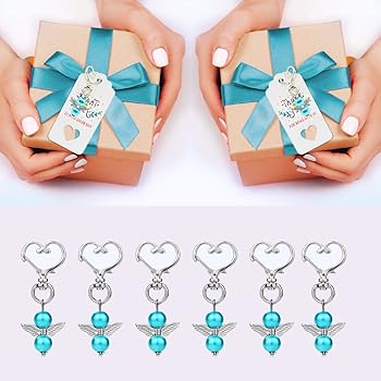 Bomboniere Comunione Bambina Katutude Ciondoli Angelo Custode Perla Colorato, Portachiavi Angelo Set Con Sacchetto In Organza Ciondolo Etichette, Portachiavi Di Perle Per Regalo Bomboniere Comunione Bambino Materiale di Alta Qualità: Gli angeli in lega di zinco sono resistenti alla ruggine e all'usura. Set di Portafortuna con Angeli: Include 12 angeli custodi, sacchetti in organza e etichette in pergamena. Perfetto per occasioni speciali. Materiale di Alta Qualità Bastoncini dei Desideri Personalizzati: Scrivi nomi e numeri di tavolo per facilitare il posizionamento. Occasioni Versatili: Ideale per matrimoni, baby shower, Natale, lauree e molto altro. Perfetto come regalo o decorazione. Design Accattivante: Ali intagliate creative sulle etichette in carta kraft e portachiavi perle luminose. Sacchetti in organza per set regalo fai-da-te.