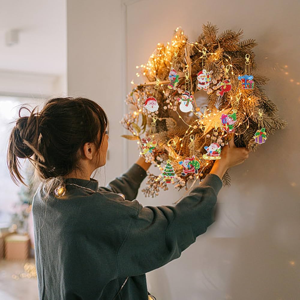 12 Pezzi Portachiavi Natalizio Con Pittura Con Diamanti,5D DIY