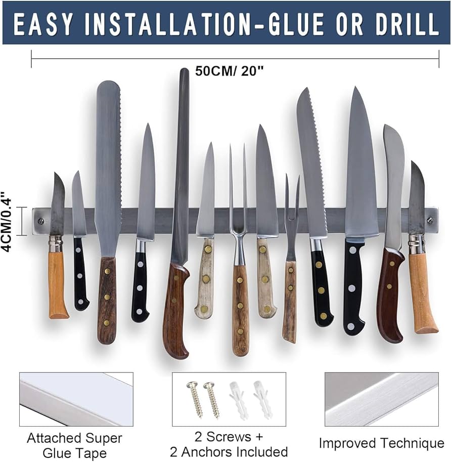 acciaio inossidabile spazzolato V2A 1,5 mm di spessore Facile installazione: questa barra degli attrezzi magnetica per coltelli viene fornita con hardware di montaggio e istruzioni illustrate facili da seguire incluse in modo da poter montare la striscia magnetica e organizzare subito la tua cucina. Versatile ver può essere ampiamente utilizzato in cucina, in lavanderia, in ufficio o in garage per contenere qualsiasi oggetto metallico. Design robusto e moderno: questo portacoltelli magnetico ha una superficie completamente magnetica alimentata da un forte magnete, Consente al portacoltelli magnetico di appendere istantaneamente anche i coltelli più grandi in modo sicuro e protetto. Barra magnetica in acciaio inox per la cucina Aderisce alla parete Design elegante e argentato Lunghezza 40 cm Ideale per coltelli, utensili ecc 6/9 potenti magneti al neodimio Organizza tutto: questa striscia magnetica ha una lunghezza estesa che ti consente di contenere più coltelli rispetto alla maggior parte dei blocchi per coltelli sul mercato, pur essendo abbastanza piccola da adattarsi in modo versatile a molti angoli e fessure nella tua cucina o spazio di lavoro. Ceppi Portacoltelli Acciaio Inox Portacoltelli Magnetici Portacoltelli Magnetico Per Parete - Coltello In Acciaio Inossidabile Striscia Magnetica Da 24 Pollici - Barra Magnetica Per Coltelli Da Parete Con Ganci Barra Per Coltelli Magnetica Ceppi Per Portacoltelli Inox Barra magnetica porta coltelli Dimensioni: 35x500mm Peso: 250g Ottimo per la visualizzazione: Usa la striscia magnetica per contenere coltelli, forbici, strumenti, chiavi e qualsiasi altra cosa tu possa pensare come l'organizzatore definitivo. Bellissimo Barra per coltelli magnetici di qualità Premium, e realizzato in acciaio inossidabile di alta qualità e ha un forte magnete. Barra portacoltelli magnetica in acciaio inossidabile 50 cm x 3,5 cm x 1,5 cm, può contenere fino a 9 coltelli grandi Usa la potente striscia di coltello magnetico in modo sicuro e sicuro per tenere coltelli, forbici, attrezzi, chiavi, altri gadget o oggetti metallici. fissaggio rimovibile incluso (viti, perni, elementi di fissaggio magneti) Rimarranno sul posto e non scivoleranno via.