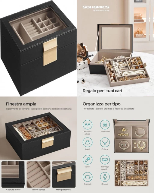 Amazon Portagioielli Outlet Portagioie Porta Gioie Porta Gioielli Portagioie In Vetro Trasparente Con 3 Cassetti Custodia Organizer Per Gioielli In Velluto Per Orecchini, Anelli, Collane, Bracciali Portagioielli Scatola Di Gioie : Amazon.it: Moda Cofanetto Portagioielli Con questo design per la conservazione libera soddisfa esigenze diverse e semplifica l'organizzazione dei vostri gioielli portagioie scatola nero songmics Dispone di 15 compartimenti piccoli, 4 di medie dimensioni e 1 grande, che consentono la conservazione di anelli, orecchini, rossetto, braccialetti e braccialetti da gioiello La sua bellezza e funzionalità lo rendono la perfetta combinazione tra decorazione di casa e conservazione dei gioielli Alta Qualità e Portatile: Il nostro organizzatore scatola portagioie è fatto di materiale ABS di alta qualità, duraturo e resistente . Decorazione Adorabile da Orso: Il porta gioielli bambina è dotato di una decorazione adorabile da orso, che aggiunge un grazioso accento ovunque. Visualizzazione Trasparente: Grazie alla sua trasparenza, è possibile riconoscere facilmente gli oggetti conservati nel porta gioielli da comodino Questa visualizzazione trasparente facilita la ricerca e rende i vostri gioielli ancora più attraenti da mostrare