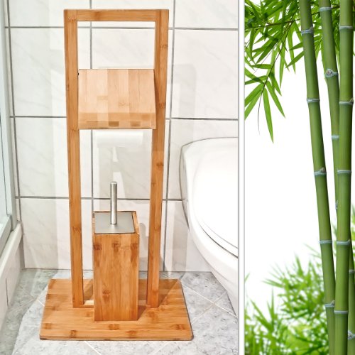 Gli articoli decorativi non sono inclusi Pratico: posiziona la piantana in bagno dove vuoi - con ripiano per posare il cellulare e salviette Larghezza del portarotolo: ca. 13 cm Piano d'appoggio L x P: ca. 19 x 11 cm Realizzato in bambù naturale e ferro Il design decorativo del supporto per WC in bambù naturale e ferro si adatta a qualsiasi bagno. Resistente Il bambù è utilizzato persino nell'edilizia in vari paesi. Casa, Giardino e Tempo libero Relaxdays offre una vasta gamma di prodotti creativi per la casa, il giardino e il tempo libero. Marchio tedesco Sia in bagno che nella toilette degli ospiti, il set da toilette indipendente può essere posizionato in modo flessibile e non deve essere fissato alla parete. Il contenitore interno del portascopino è rimovibile per la massima igiene Porta rotolo di ricambio H: ca. 32 cm Con materiale di montaggio Testa dello scopino H x D: ca. 10 x 8 cm 3 in 1: set di accessori per il bagno - combinazione di porta rotolo, scopino e porta carta igienica Grande varietà di prodotti Affidabile e impegnato Oltre 10 anni di esperienza Piantana Portarotolo E Scopino Relaxdays Portascopino WC Da Bagno, Contenitore In Bambù Rotondo Portarotolo Carta Igienica Da Terra Resistente all'umidità Il bambù può essere utilizzato sia in bagno che in cucina senza problemi di umidità. Decorativo La tonalità naturale del bambù si adatta perfettamente a ogni stile d'interno. Set da wc bagno in bambù e metallo Con questa elegante piantana portarotolo da toilette, avrai sempre a portata di mano la carta igienica, ma anche lo scopino. Set di accessori da WC con scopino e portarotolo ✓ Charme naturale grazie alle tonalità naturali del bambù ✓ Porta scopino facile da pulire ✓ Igienico Dimensioni H x L x P: ca. 65 x 30 x 20 cm Peso: ca. 1,9 kg Stili per ogni gusto