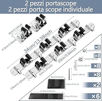 RIXOW Portascopa E Portaspazzole, Portascope Da Muro Montato, Per Garage, Cucina, Cantina, 3
