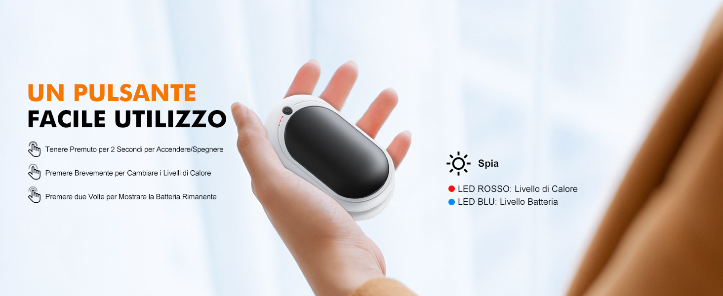 CALORE A LUNGA DURATA: Con una capacità della batteria di 2*2000mAh e il nostro ultimo chip AI intelligente, lo scaldamani elettrico ricaricabile ti offre fino a 8 ore di calore durante l'inverno rigido. SCALDAMANI, SET DI 2 Scaldamani Elettrici Magnetici Ricaricabili Portatili Riuti - EUR 23,99. IN VENDITA! Massimo di 55°C. I nostri scaldamani hanno ottenuto le certificazioni di sicurezza 387960445952 In alternativa, possono essere usati separatamente, uno per ogni mano, o condividere uno scaldamani con un familiare. I nostri scaldamani hanno ottenuto le certificazioni di sicurezza UL, CE, UKCA e FCC. SCALDAMANI ELETTRICO MAGNETICO 2-IN-1: Un set di 2 scaldamani simmetrici che possono essere combinati in un unico scaldino da palmo, offrendo calore a 360 gradi per le mani. Analizzando continuamente e riconoscendo la temperatura tra lo scaldamani e le mani, assicura un controllo preciso del calore per un comfort ottimale e un riscaldamento sicuro. Massimo di 55°C. Mantengono le mani calde tutto il giorno in ufficio, a scuola, in campeggio, a caccia o durante qualsiasi attività all'aperto nel freddo inverno. Design tascabile portatile, ideale per viaggi, caccia, golf, escursioni, campeggio, sci, e altro ancora. CHIP SENSOR DI TEMPERATURA AI: Gli scaldamani WHATOOK sono dotati di un chip di controllo della temperatura AI intelligente integrato, che offre 3 livelli di controllo preciso del rilascio di calore. LEGGERO E PORTATILE: Peso singolo 0,1 kg, design magnetico 2-in-1, facile da trasportare e utilizzare. Riutilizzabile ed ecologico. Scaldamani Elettrico ITSHINY , Scaldamani Ricaricabile 2 Confezioni, Mini Scaldamani Riutilizzabile USB Portatile Con 3 Livelli Di Calore Per Raynauds, Outdoor, Campeggio, Grandi Regali Per Uomo Donna The Heat Company Scaldamani Premere a lungo per 3 secondi per accendere. Lo scaldamani ricaricabile WHATOOK è dotato di protezioni integrate contro sovracorrente, surriscaldamento e cortocircuito.