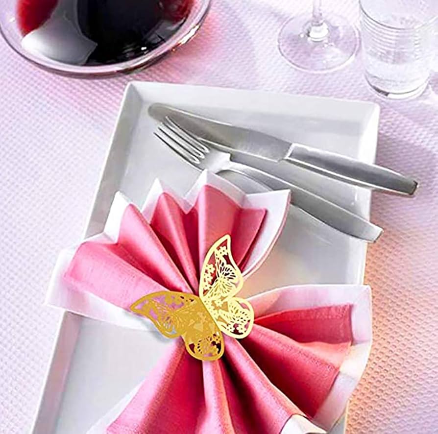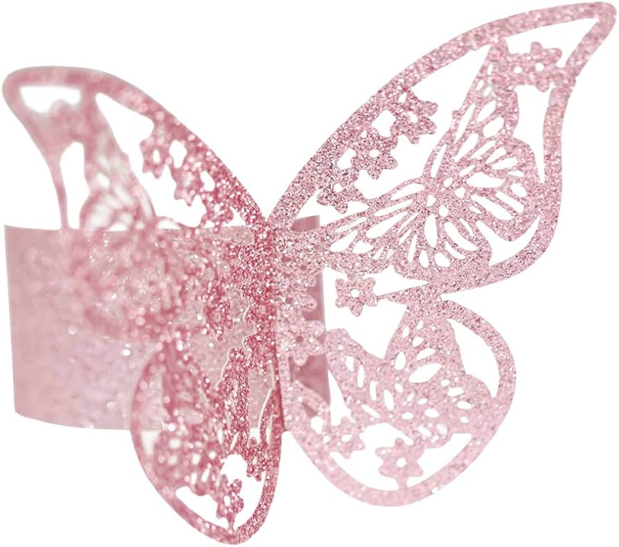 Portatovaglioli In Carta A Forma Di Farfalla, 50 Pezzi, Taglio Laser 3D, Per Matrimoni, Cene, Feste, Tovaglioli, Festival, Anniversari, Ristoranti (rosa