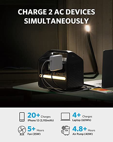 Centrale Elettrica Portatile Anker 521, Generatore Portatile 256Wh 200W Generatore Esterno A 6 Porte Con 2 Uscite Ac Uscita Usb C Pd 60 W Batteria Lifepo4 Led Da Campeggio Camper Blackout
