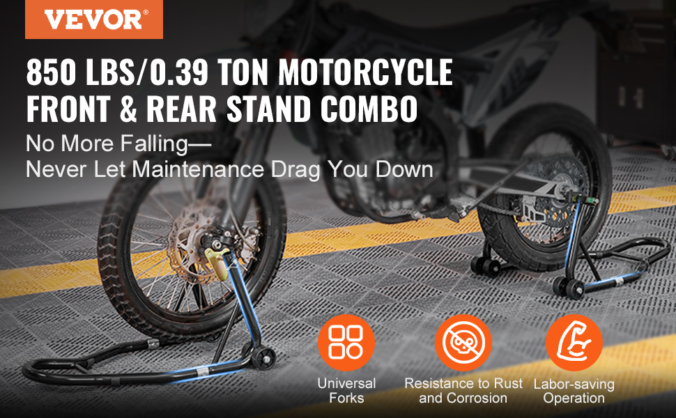 VEVOR Cavalletto Per Ruote Posteriore Per Il Sollevamento Della Moto Bici Garage Capacità Carico Max. 390kg, Cavalletto Supporto Per Moto Bici Da Officina Adatto Testa Della Forcella A Doppia U + L